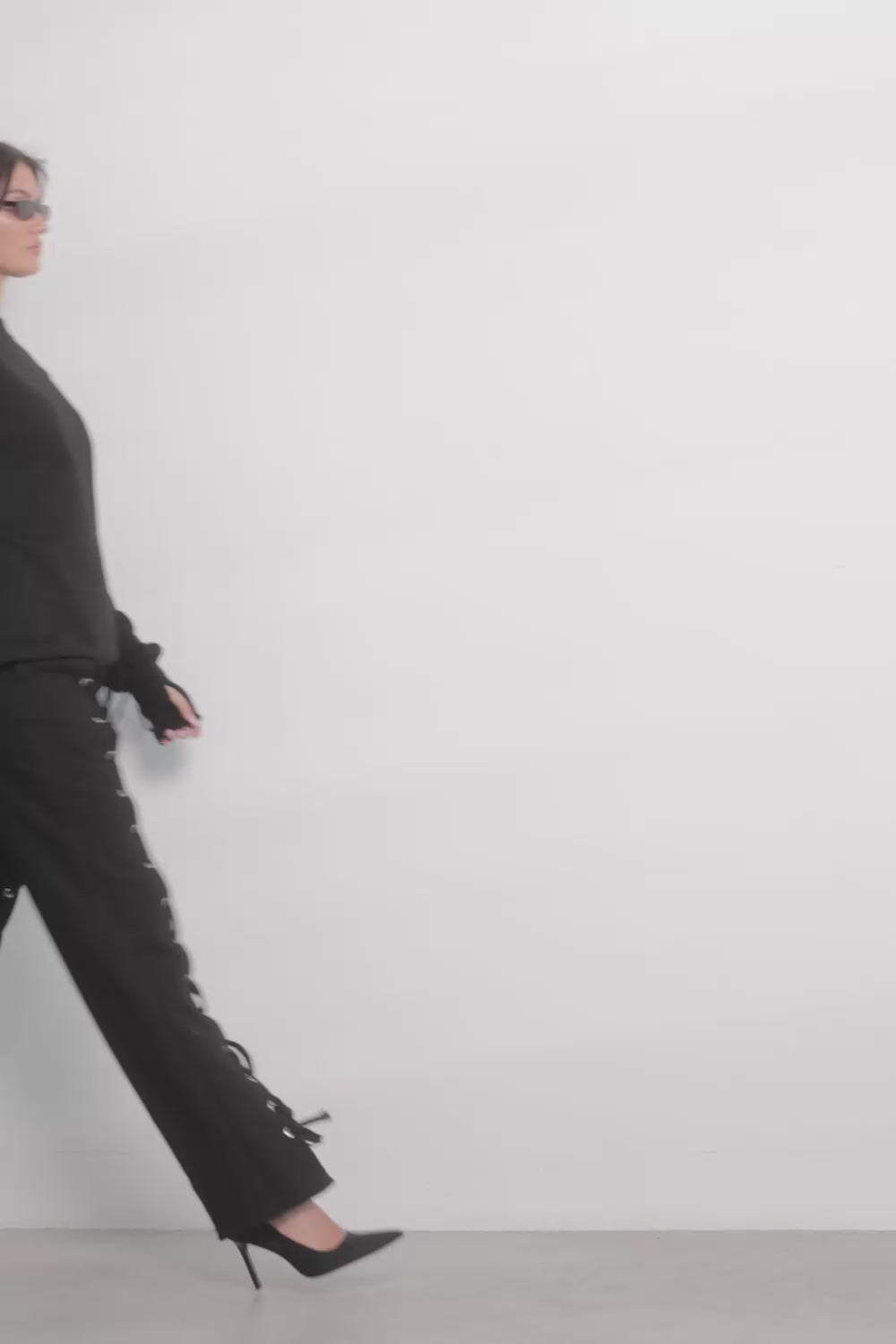 Embrace comfort and style with the Linea Oversized Black Sweatshirt, designed for women by Atelier Hamza. Made from premium materials, this relaxed-fit sweatshirt features decorative eyelets along the sleeves with an adjustable drawstring to customize the opening.