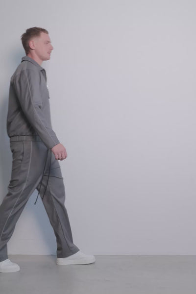 The Rud Grey Jacket from Atelier Hamza for men is designed to combine structure with modern functionality. Cut from a refined fabric, this jacket is cropped at the waist for a sharp silhouette, while the reflective band detail enhances both style and utility.