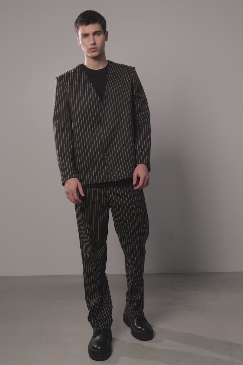 • Premium tailored striped cloth – refined woven fabric offering structure, durability, and an elegant drape.