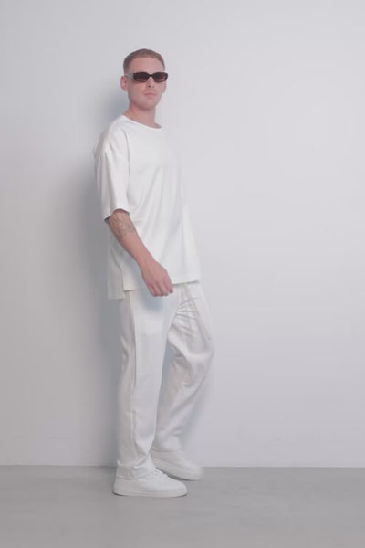 Ta koszulka to idealny wybór dla osób, które cenią surowe wykończenia i luźne sylwetki. Surowe szwy na ramionach, przodzie i tyle dodają jej drapieżnego, zdekonstruowanego charakteru, nadając każdej stylizacji wyjątkowy, casualowy wygląd. Obniżona linia ramion podkreśla oversize’owy krój, zapewniając jednocześnie wygodę i styl. Warstwowy design kołnierza dodaje subtelnej złożoności dekoltowi, zachowując minimalistyczny charakter.